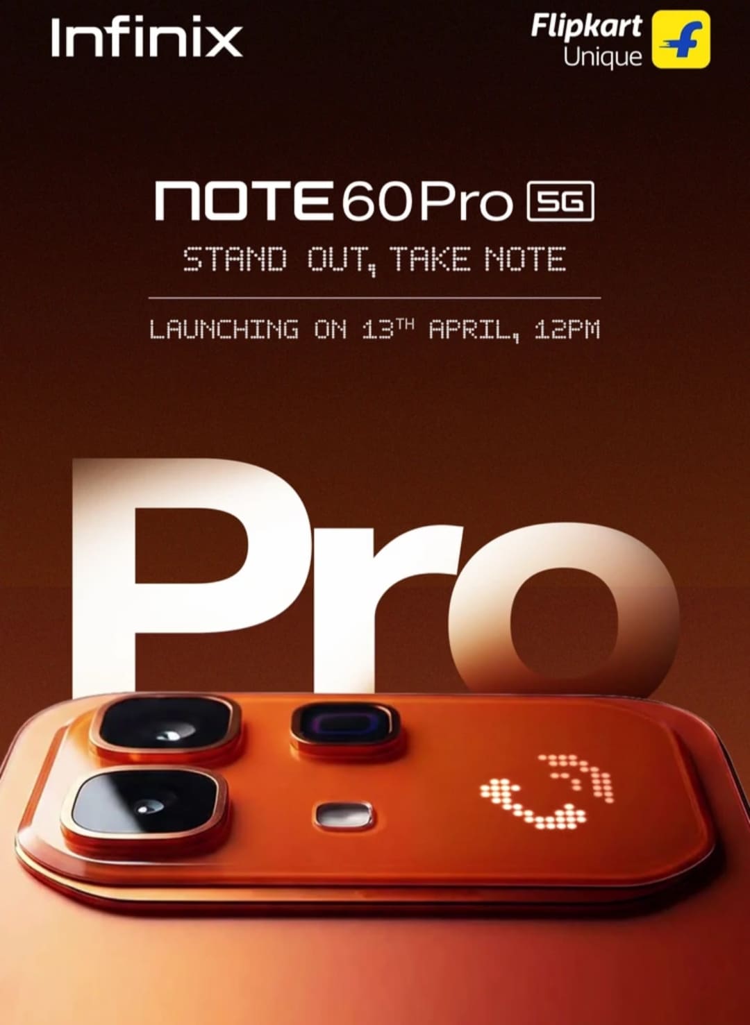 The Infinix Note 60 Pro is expected to launch in India on 13 April 2026.